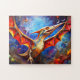 Ein lebendiges abstraktes Ölkunstwerk in Regenbogenfarben von Dinosauriern, die die Planeten der Galaxie durchstreifen.