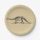 Ein antikes Dinosaurier Skelettkunstdesign mit klassischem Papierhintergrund und einem illustrierten Dinosaurier Skelett in altmodischem Stil.