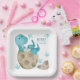 Dinosaurier Thyboy Babyduschpapier-Teller verfügen über einen niedlichen Tyrannosaurus-Rex aus einem Ei mit blauen Dinosaurier-Tracks schlüpfen. Kunst von KL Stock