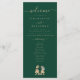 Cérémonie de Mariage Dinosaure Carte du programme, drôle T-Rex Mariée & Salle sur Dark Green Ajoutez une touche de plaisir jurassique à votre grand jour avec ce drôle de programme de mariage à thème dinosaure, avec une aquarelle fantaisie d'une mariée T-Rex et mariée dans des teintes chaudes brun et beige. Placée contre un riche arrière - plan vert foncé, cette carte unique de programme de mariage est le parfait mélange d'humour et d'élégance. Ce programme de mariage personnalisable est doté d’une typographie moderne et élégante et de polices de caractères, ce qui facilite la personnalisation avec les noms de mariée et de mariée, la date du mariage et les détails complets de la cérémonie. Idéal pour les mariages en plein air ou les cérémonies d'été, cette carte de programme tiendra les invités informés tout en leur offrant un souvenir mariage unique qu'ils aimeront. L'oeuvre originale de Catherine Sweetman en fait un design exceptionnel pour tout couple qui cherche à mettre en valeur sa personnalité et son amour du dinos