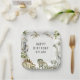 Cooles Dinosaurier-Thema, Geburtstagsfeier-Teller. Wasserfarbenes prähistorisches Blattwerk und Dinosaurierrahmen.