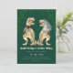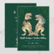 Funny Dinosaur Jurassic Wedding Invitation Dark Green & White | Watercolor T-Rex Bride and Groom | Modern Jungle Theme with QR Code RSVP