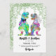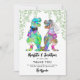 Merci à vos invités mariages d'être roarsome dinosaure thème mariage merci avec le plaisir coloré dinosaure marié et marié votre carte de remerciements de mariage personnalisé. Mariée et marié psychédélique T-Rex avec violet rose bleu jaune et orange avec feuillage de jungle jurassique et typographie moderne avec modèle facile d'utilisation. Dino original et feuillage par l'artiste Catherine Sweetman