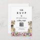 Fun Dinosaur mariage thématique RSVP en ligne QR Code carte de boîtier site Web avec mariée T-Rex et marié dans une prairie fleur sauvage préhistorique colorée. Calligraphie moderne de typographie lunaire avec facile à personnaliser le modèle afin que vous puissiez ajouter le code QR du site mariage et l'adresse web du navigateur et des instructions utiles pour les invités. Unique Tyrannosaurus Rex marié et marié avec aquarelle d'été art floral original oeuvre de l'artiste Catherine Sweetman Idéal pour la réception du jour de mariage ou le dîner de répétition. La suite mariage jumelée comprend tout ce dont vous aurez besoin lors de votre voyage mariage amusant