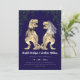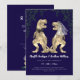 Funny Dinosaur navy blue and White Jurassic Wedding Invitation T-Rex Bride and Groom | Modern Jungle Theme with QR Code RSVP