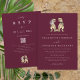 Dinosaur Theme Wedding Burgundy Cream QR Code Einladung