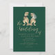 Dinosaur Wedding Invitation Elegant Moderne T-Rex Braut & Groom Dino Design in Dark Green feiert Ihren großen Tag mit einer einzigartigen Drehung! Diese elegante und moderne Dinosaurier-Hochzeitseinladung bietet eine skurrile Aquarellillustrierung einer Braut und Bräutigam T-Rex für Paare, die eine Liebe für Dinosaurier teilen. Set vor einem ausgeklügelten dunkelgrünen Hintergrund verbindet die Einladung elegantes Drehbuch mit moderner Typografie und schafft ein stilvolles und gleichzeitig spielerisches Ambiente. Mit der anpassbaren Vorlage können Sie Ihre Namen, Ihr Hochzeitstermin, Ihren Veranstaltungsort und andere wichtige Details ganz einfach personalisieren. Fun und romantisches Dino-Paar Kunstwerke Original Illustration von Künstlerin Catherine Sweetman Ideal für heikle, thematische oder naturliebende Hochzeiten Perfekt für Jurassic Park Fans oder für jeden, der eine nicht-traditionelle Hochzeitseinladung will, die noch immer chic und bedeutend fühlt.