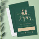 Dinosaur themed Hochzeit Antwort Umschließungskarte. Mit einer T-Rex Braut und einem Bräutigam mit dunkelgrüner, moderner Script Hochzeit RSVP Karte bringt Ihnen ein einzigartiges und skurriles Gefühl zu Ihrem besonderen Tag. Elegante Kalligraphie-Stil Skripte und moderne Typografie Spaß und einfach zu personalisieren, sodass es einfach, Ihre Hochzeit Stil. Die von der Künstlerin Catherine Sweetman entworfene Aquarellkunst präsentiert eine charmante Mischung aus stilvollem Design und dino-inspirierter Liebe. Diese RSVP-Karte ist ideal für Hochzeitsempfang oder Probe-Dinner. Sie ist Teil einer kompletten Hochzeitssuite, die alles beinhaltet, was Sie brauchen, um Ihre Hochzeitsreise so unvergesslich wie Ihre Liebe zu machen.