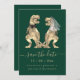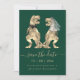Machen Sie Ihre Hochzeit unvergesslich mit dieser skurrilen Dinosaurierkarte "Save the Date" mit einer T-Rex Braut und einem Bräutigam! Dieses einzigartige Design ist perfekt für unterhaltsame Paare geeignet und präsentiert reizvolle Aquarellbilder einer T-Rex Braut und Bräuche auf dunkelgrünem Hintergrund gepaart mit modernster Typografie-Schrift. Mit Ihren Namen und Ihrem Hochzeitsdatum können Sie ganz einfach personalisieren, um einen unvergesslichen ersten Eindruck für Ihren großen Tag zu schaffen. Dieses eigenartige "Save the Date" eignet sich ideal für Dinosaurier-Liebhaber, Themenhochzeiten oder Paare, die eine spielerische Drehung in ihre Hochzeitsstätte aufnehmen möchten. Original-Kunstwerk der Künstlerin Catherine Sweetman.