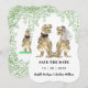 Freuen Sie sich auf diese lustige Dinosaurier Hochzeit und ersparen Sie sich die Einladung mit T-Rex Braut und Bräutigam mit Wasserfarbe Jurassisches Dschungelblättern. Einfach mit den Namen der Dino-Braut und der Zeltsterne und dem Hochzeitstermin anpassen. Aquarell Tyrannosaurus Rex Braut und Bräutigam Illustrationen mit moderner Typografie. Einzigartiges Jurassic-Dinosaurier-Originalwerk der Künstlerin Catherine Sweetman