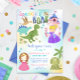 Invitation Dinosaur Princess conçue de façon unique. Parfait pour votre soirée à thème Dinosaure et Princesse !
