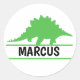 Dinosaure nom autocollant rond personnalisé