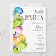 Invitation de fête d'anniversaire de dinosaures colorés.