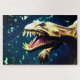 Dieses Rätsel hat einen verrückten Dinosaurier, der darauf abgebildet ist.