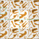 Gold und weiße Dinosaurierknochen wiederholen Muster! Zu den Dinosauriern in diesem Design zählen Tyrannosaurus Rex, Allosaurus, Parasaurolophus, Triceratops, Brachiosaurus, Spinosaurus und Velociraptor.