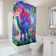 Dieser Duschvorhang hat einen Dinosaurier darauf.