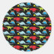 Dinosaurier entwirft Blaues Grün auf schwarz Runder Aufkleber