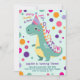 Ein bezaubernder Dinosaurier-Cartoon für die Geburtstagsparty Ihres Kindes ist hier, um Ihnen zu sagen, dass Sie Stomp, Chomp und Roar und Party wie ein Dinosaurier! Niedlich mit modernen aquamarinen, rosa, orangefarbenen und lila Polka-Punkten!