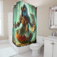 Dieser Duschvorhang hat ein Drachenwesen, das darauf schlüpft.