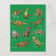 Dinosaurier Postkarte mit einigen weniger verbreiteten Dinosaurier-Typen in Farbabbildungen mit ihren Namen auf grünem Hintergrund. Sie sind NICHT ZU SCALE, nur für Spaß, ideal für Kinder oder andere Dinosaurier-Liebhaber. Das Detail ist interessant und die Gesichter sind ausdrucksstark. Zu den Typen gehören Styracosaurus, Nanyangosaurus, Afrovenator, Zalmoxes, Megalosaurus, Achelosauras, Pentaceratops, Gastonia, Anchiceratops und Avaceratops.