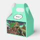 Ein modernes, unterhaltsames und auffälliges Design mit prähistorischen Tyrannosaurus-Rex- und Wollmückentieren umgeben alte Steine, fliegende Pterodaktyls, Palmen und den Polarborealis. Der obere Deckel hat ein scallopiertes Banner, auf dem eine fett schwarze Vorlage erscheint für Ihre benutzerdefinierte Formulierung und / oder Namen. Sie können die Hintergrundfarbe beliebig ändern. Ihr Sohn wird diese Dinosaurier-Gastgeschenke Liebe geben.