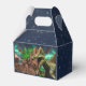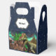Ein modernes, unterhaltsames und auffälliges Design mit prähistorischen Tyrannosaurus-Rex- und Wollmückentieren umgeben alte Steine, fliegende Pterodaktyls, Palmen und den Polarborealis. Der obere Deckel hat ein scallopiertes Banner, auf dem eine fett schwarze Vorlage erscheint für Ihre benutzerdefinierte Formulierung und / oder Namen. Der Hintergrund ist ein dunkelmarineblau mit Imitaten, die Nachtsterne ausstrahlen. Ihr Sohn wird diese Dinosaurier-Gastgeschenke Liebe geben.