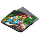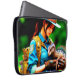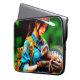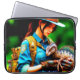 Dieser Laptop-Ärmel hat eine Dame, die einen Dinosaurier darauf hält.