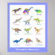 12 Aquarelldinosaurier in farbenfrohen, psychedelischen, hellen Farben mit ihren Dino-Namen, das perfekte Design für das Mädchen, das Dinosaurier Liebe. Periwinkle und weiße Grenze mit personalisiertem Namensschild. Dieses spaßige Paläontologiemuster umfasst alle prähistorischen Jurastien-Favoriten wie T. rex oder Tyrannosaurus, Velociraptoren, Brachiosaurus, Brontosaurus, Stegosaurus, das fliegende Pterodactyl, Triceratops, Spinosaurus, ankylosaurus, Plesiosaurier, Parasaurolophus und Pachycepeprus. Halosaurus ist eine lustige Rechtschreibherausforderung für jedes Kind. Original-Kunstwerk von Catherine Sweetman