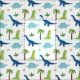 Dino-Fans werden sicher RAWR begeistern, wenn sie dieses zauberhafte Dinosaurier-Gewebe mit T-Rex, Brachiosaurus und Stegosaurus erhalten. Dieses Dinosaurier-Muster umfasst Palmen, Dinospuren, Knochen und prähistorische Farne.