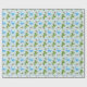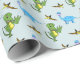 Blaues Packpapier mit blauen Dinosauriern mit einem rosa Mund, grünen Dinosauriern mit einem gelben Bauch und 2 braunen Pterodactyls mit den gelben Schnäbeln. Farbe des Papiers kann besonders angefertigt werden.