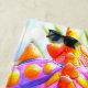 Das Badetuch ist genügend gross für eine Erwachsene Person. Es fühlt sich weich an. Über die Saugfähigkeit bei Nässe kann ich noch nichts sagen aber es ist kein "dickes" Badetuch. Der Druck ist toll, die Farben sind etwas weniger kräftig als auf dem Bild, was aber keinesfalls unschön wäre.