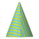 Dieser Partyhut kennzeichnet großen drei in der Orange und das Gelb, das indem grüne Tyrannosaurus rex (t-rex) umgeben wird tragende Party Hüte eines blauen Stegosaurus und eines und das Halten eines Geschenkes. Grün, blau, Orange und gelbe Sterne umgeben Sie die Spitze des Bildes.