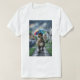 Ein Dinosaurier, der durch die Stadt spaziert.