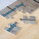 This is a personalized jigsaw puzzle with a line of colorful dinosaurs beside a bright blue pool. It is perfect to give on a birthday or other occasions with a personalized message.