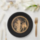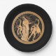 Set von acht 9" Papier-Teller mit einem Schwarz-Gold-Bild von Dionysus, griechischer Gott der Wein und Weinherstellung und rituellen Wahnsinn, und die Satyrs.