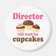 "Direktor - wird für Cupcakes arbeiten"! Dieses komische Berufsdesign hat drei Schokoladenkuchen und einen tollen Beruf-Slogan für den Regisseur. Es macht ein nettes kleine Geschenk oder Geschenk für jeden Musikdirektor, Filmregisseur, Theaterregisseur.