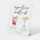 Dieses elegante Cocktails-Menü Podestal Schild zeigt eine eigene schwarze Typografie über 2 Drinks und deren Zutaten für Ihre Hochzeitsfeier Bar. Ein niedlicher Dirty Shirley Temple und Lemon Drop martini zeichnend fügen einen coolen Flair zu Ihrem Bar Menü. Füllen Sie bitte die Namen des Paares und das Datum für seinen Empfang aus.