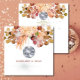 Set der Szene für eine Disco-Themenfeier. Weiß ist die Hintergrundfarbe für diesen floralen Disco-Ball eleganten Custom Wedding Probe Dinner Design. Ebenfalls auf dem Design befinden sich silberne Farbflecken. Ändern Sie einfach die Informationen für Ihre eigene Einladung. Elegantes formales Hochzeitsdesign.