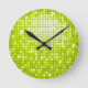 Wanduhr mit einem Spaß und funky stylised "einem Discospiegelfliesenblick" druckte Muster in den Schatten von Limonem Grünem und von Weiß. Kann als Hintergrund für Ihren eigenen Text, Bilder und Ideen verwendet werden. Merken Sie bitte dieses ist ein digitales Kunstdruckbild, glänzt es nicht oder enthält wirkliche Spiegel oder Glitter.