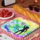 Ein cooler Teller mit gefärbte Krawatte Hintergrund und eine Disco-Silhouette mit individueller Formulierung. Ideal für jedes Alter Geburtstagsparty.