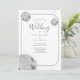 Eine disko-thematische Hochzeitseinladung in Weiß-, Grau- und Silbertönen (ohne Folie). Genießen Sie ein lustiges Hochzeitsthema, das so leise oder elegant sein kann, wie Sie möchten. Fügen Sie einfach Ihren Text hinzu, fügen Sie diese Einladung in Ihren Warenkorb, dann haben Sie eine Hochzeit, die groovy ist. Disco Retro Hochzeitsfeier | ©Melissa Patton - Designer