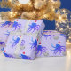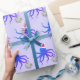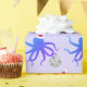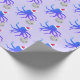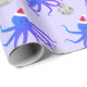 Fantastische Weihnachtsverpackung mit einem Muster von lächelnden, lila, Oktopus-Illustrationen, die Weihnachtsmannmützen tragen und Diskobälle auf einem leichten lila Hintergrund halten. Diskothek Ball Octopus Weihnachtsmannmütze Weihnachtswrapping Paper Holidadesign | ©Melissa Patton - Künstler/Illustrator