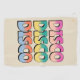 Farbenfrohe Grunge Retrostil "Disco Disco Disco Disco" Textgestaltung mit gestreiften Buchstaben Dekoration