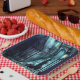 Dieses spukende, grafische Foto, ein großer, antiker, schmiedeeiserner Eingang. Im Hof, am Fuß des steilen Stegs, stehen Treppen, eine geistreiche Figur, in fließendem schwarzem Tuch auf der Spitze der Stufen, auf einem Hügel, ist ein riesiges, gotisch aussehendes Herrenhaus, in dicken Nebel verkleidet, hervorgehoben durch diesen spöttischen Satz: "Genießen Sie einen wunderschönen Urlaub", in Oozing, Tropfen, schwarzem Schriftart!