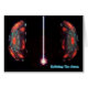 Représentation fractale d'un noyau atomique divisé par une particule à haute énergie. Le texte "Splitting The Atom" apparaît en bleu et blanc brillant.