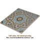 Die dekorative Keramik, die eine Mischung aus Modernität und Klassik ausstrahlt. Es zeichnet sich durch ein kompliziertes geometrisches Muster aus, das sowohl auffällig als auch raffiniert ist. Das Hauptmotiv des Designs ist eine symmetrische Anordnung aquamariner und weißer Blütenformen, die aus einem goldgelben Kreis ausstrahlen. Jedes Blatt ist in Gold umrissen und fügt der Kachel eine Touch Luxus hinzu. Um dieses zentrale Motiv herum sind graue Sechsecke mit zarten weißen Mustern, die an Frost oder Lakework erinnern. Die Kombination aus aquamarin, weiß und gold vor grauem Hintergrund schafft einen auffallenden Kontrast, der die Ästhetik der Kachel insgesamt verbessert. Diese Kachel wäre eine perfekte Ergänzung zu den verschiedenen Innenräumen, einschließlich Bädern und Küchen, die eine Touch von Eleganz und Eleganz hinzufügen.
