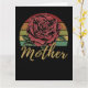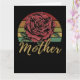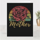 Send this distressed vintage-style greeting card with your own personalized message on the front and back. Feys a classic red rose in front of a distressed retro sunset background and the word "Mother" in gold machen.