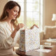 Add a touch of vintage charm to any occasion with this exquisite watercolor floral gift bag. Featuring a delicate pattern of peach, yellow, and blue blossoms scattered across a crisp white background, this bag evokes a sense of timeless beauty. The soft, hand-painted aesthetic brings a unique artistic flair, perfect for birthdays, anniversaries, or just because. Its generous size and sturdy construction ensure your thoughtful gifts are presented with elegance and care. Let this beautiful floral design add a memorable and sophisticated touch to your special deliveries.