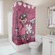 Duschvorhang, der für die kleine Diva perfekt ist, kennzeichnet eine braune behaarte Diva in einem rosa Kleid, in einem Eiffelturm, rosa in einem Pudelhund, rosa in einer Flaggenfahne, Staplungsin hutkästen und in einem Text, der Ooh La-La liest!