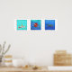 DiveBuddy.com Poster mit Kunstwerken von Bonnielynn. Drei Bilder mit einer Pfeilkrabbe, Hammerköpfen und einem Walhai...alle mit einem DiveBuddy.com Banner.